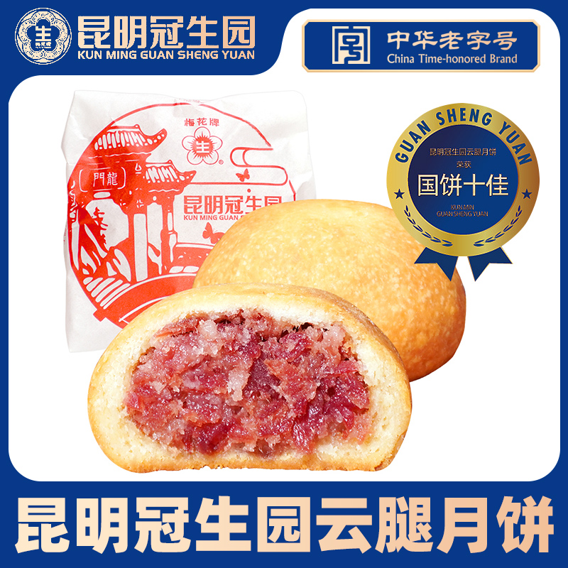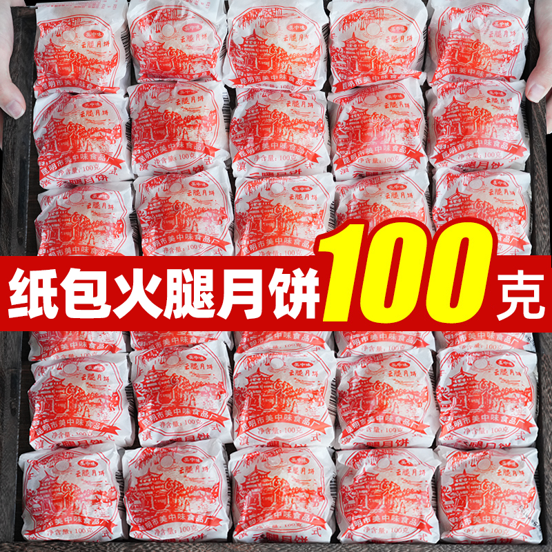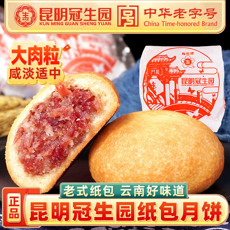 昆明冠生园纸包云腿月饼梅花牌火腿月饼云南特产酥皮滇式中秋月饼