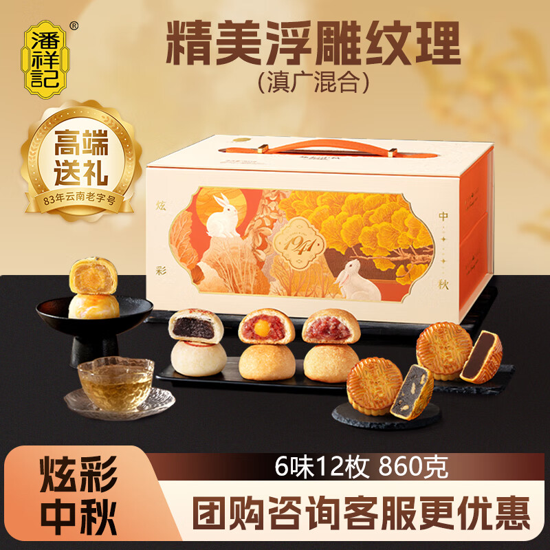 潘祥记云腿月饼小饼鲜花饼蛋黄饼中秋节送礼特产云南宣威火腿月饼