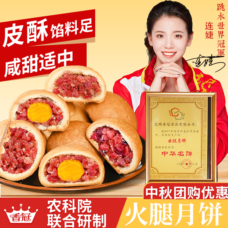 香冠月饼农科院宣威火腿月饼云南特产滇式蛋黄月饼糕点团购送礼