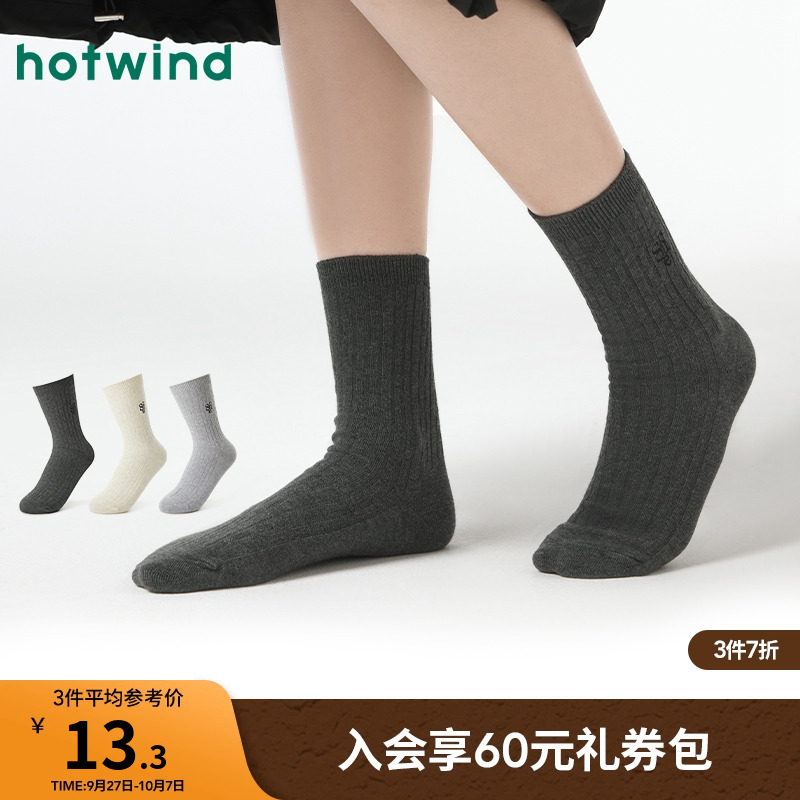 热风2024年冬季新款女士时尚简约麻花高帮袜百搭舒适中筒居家袜女