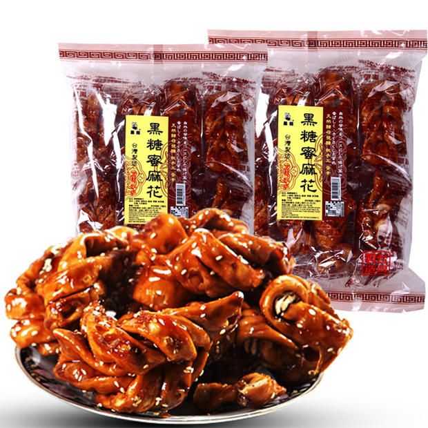 中国台湾特产 黑熊黑糖蜜麻 鸡蛋蜜麻花手工小麻花零食240克*3袋