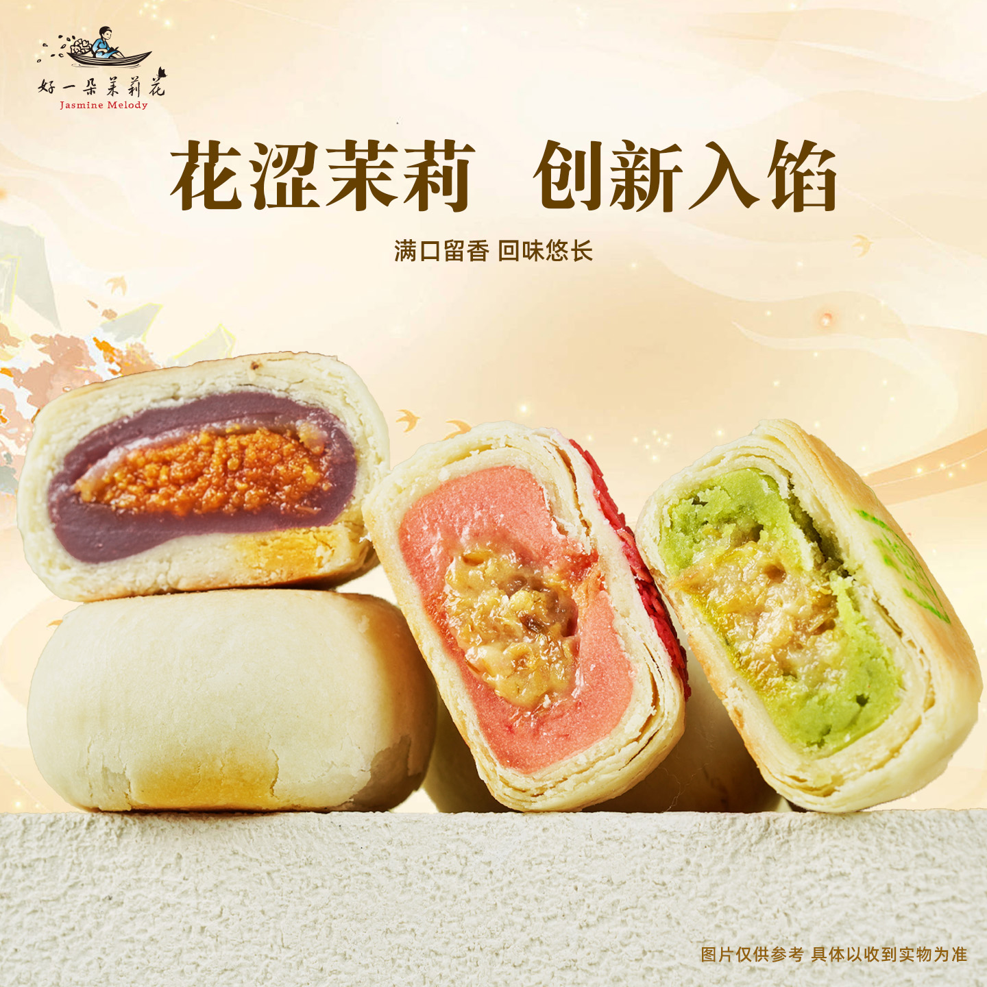 好一朵茉莉花苏式月饼中式糕点鲜花饼特产茉莉点心特色休闲零食