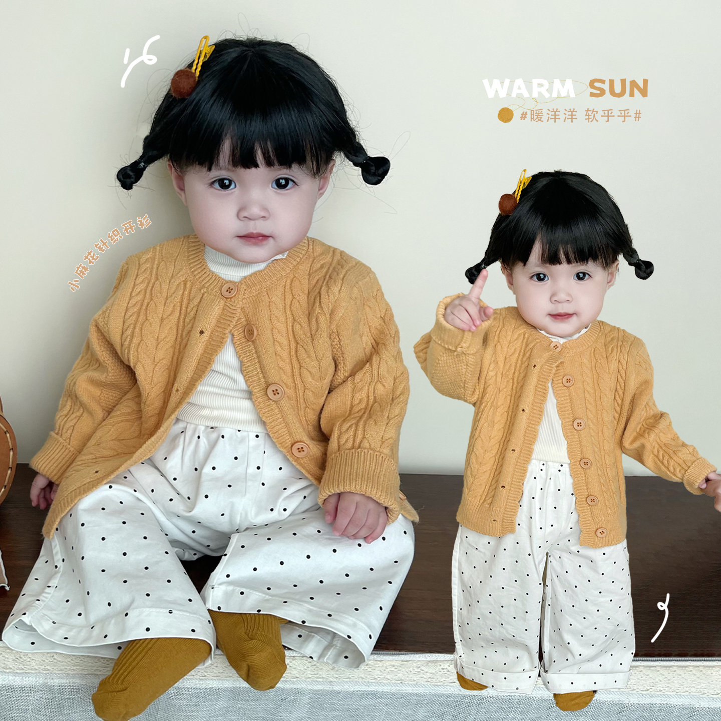 女童春秋季毛衣裤子套装女宝宝韩系麻花针织开衫婴幼儿波点休闲裤