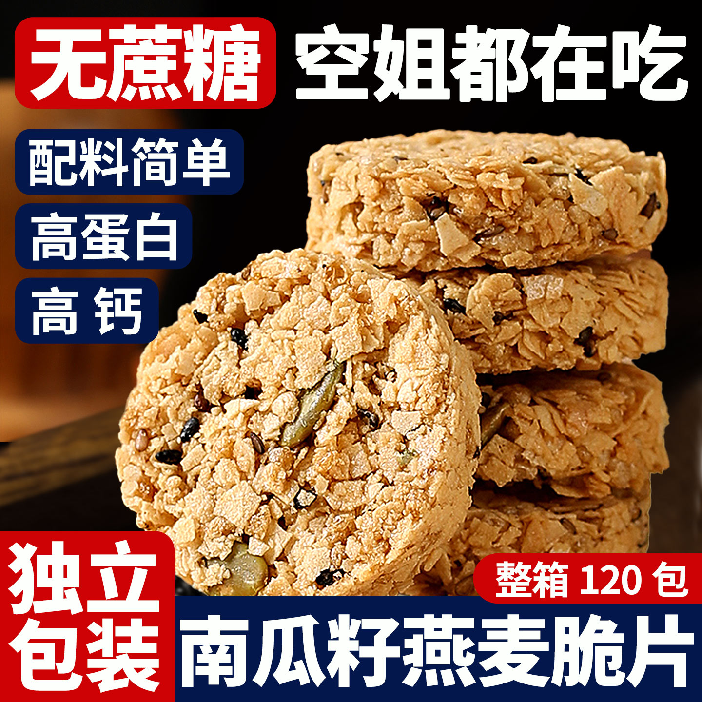 无蔗糖南瓜籽燕麦脆片谷物能量饼干酥饼营养早餐粗粮代餐零食品