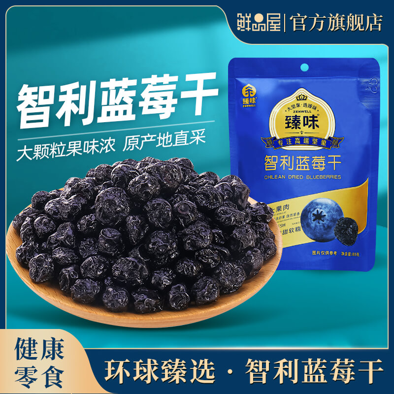 臻味智利进口原料蓝莓干袋装办公室零食小吃烘焙孕妇果干旗舰店