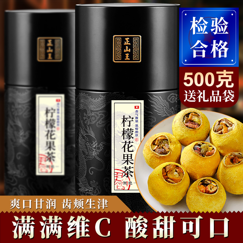 正山王柠檬花果茶红枣枸杞栀子葡萄干陈皮丝菊花玫瑰500克罐装