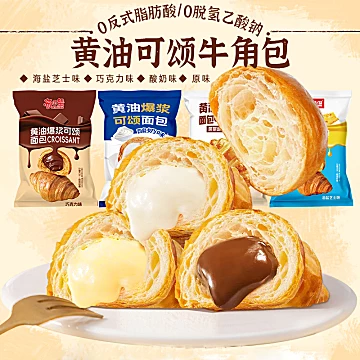 金币12.64!爆浆牛角包!9包/450g咸奶酪味【爆浆咸香】!精选酸奶味与巧克力味双重美味,外酥内软,每一口都爆浆浓郁。独立小包装,方便携带,早餐、下午茶、学生零食皆宜。