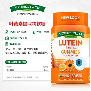 【下单享8折,叠加淘金币,80粒*3瓶仅71.2,折23.7/瓶】告别传统难吞咽的护眼片!Q弹果味,每粒含黄金比例叶黄素6mg+玉米黄质1mg,精准配比更易吸收,眼睛不酸涩水润亮晶晶!