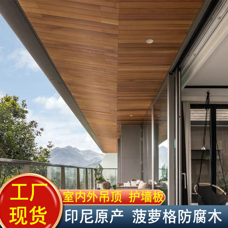 印尼菠萝格防腐木桑拿板实木扣板室内外吊顶板天花阳台护墙板墙裙