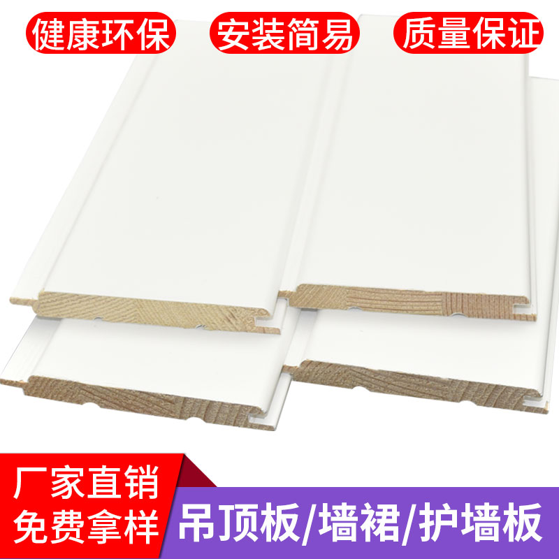 速发白色实木烤漆扣板樟子松免漆桑拿板墙裙护墙板吊顶背景墙装饰