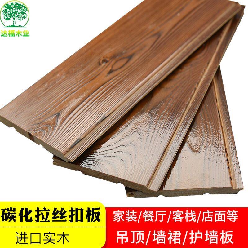 防腐木板深度碳化桑拿板免漆扣板实木吊顶拉丝炭烧店面餐厅民宿热