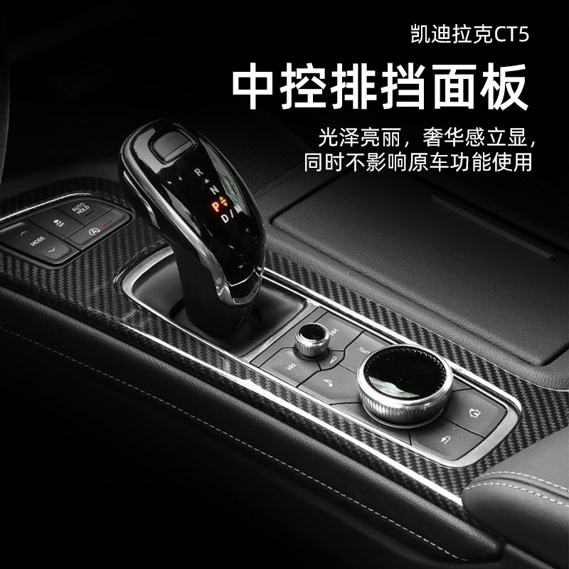 适用凯迪拉克CT5排挡装饰贴中控面板碳纤贴内饰贴片ct5改装排挡框