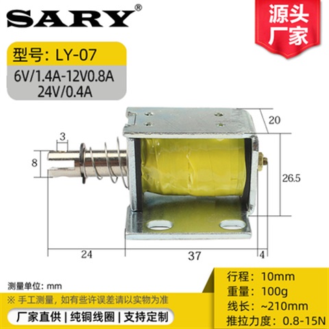 推拉式电磁铁长行程35mm微型直流12v/24V 牵引吸力5kg门锁电磁铁
