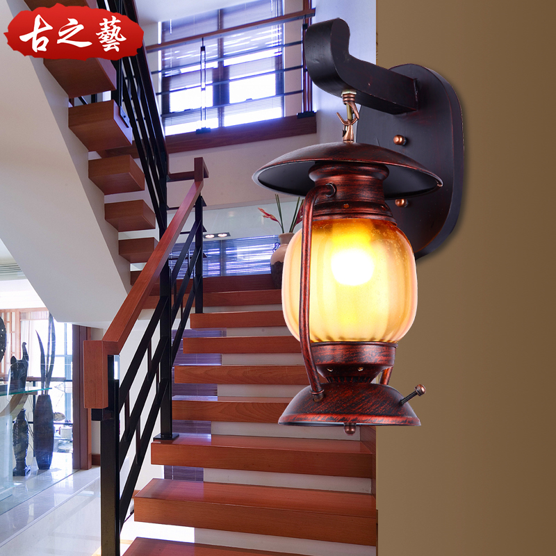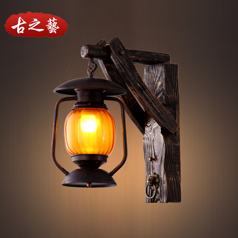 美式乡村壁灯复古实木民宿过道灯酒吧灯茶楼灯个性创意工程灯具