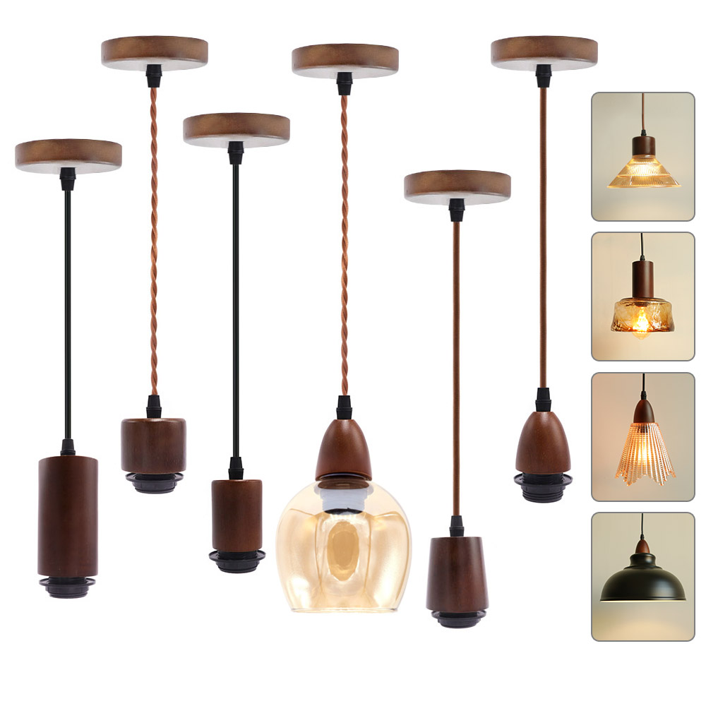 美式乡村怀旧实木灯头家用商用 过道玄关吧台 酒吧灯具单头小吊灯