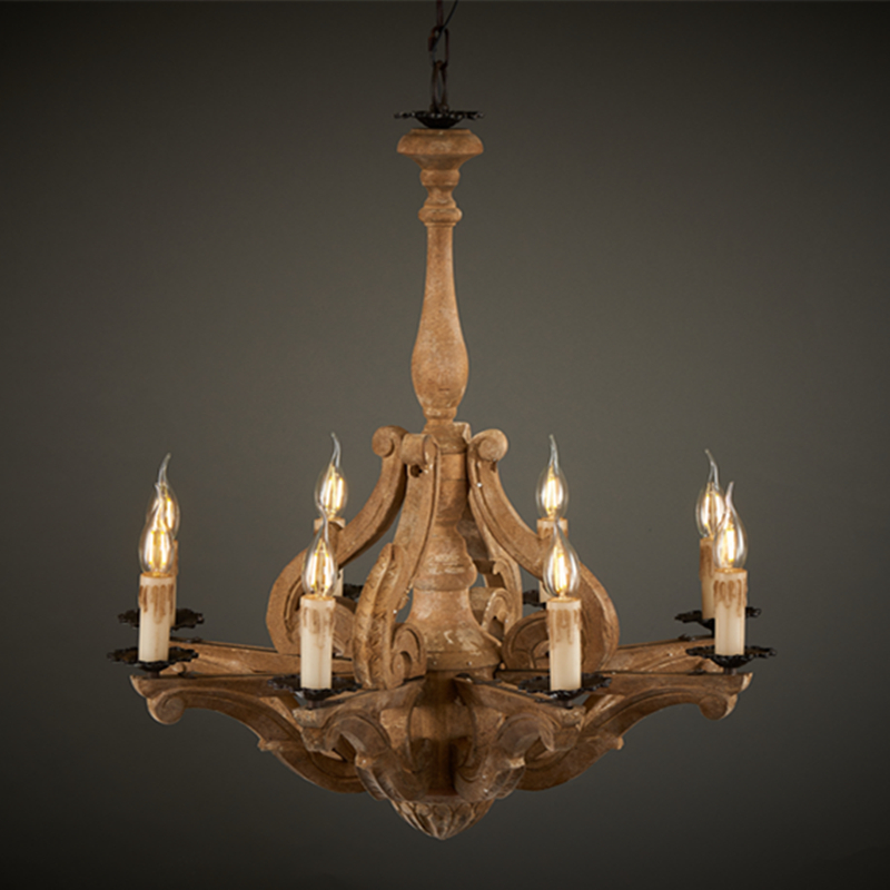 美式乡村木艺实木吊灯复古吊灯创意客厅 酒店酒吧复式楼木头吊灯