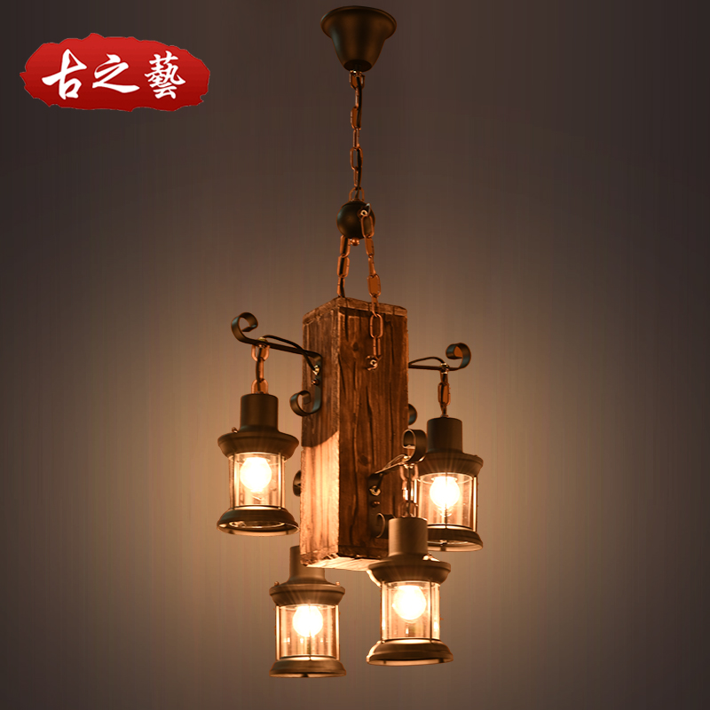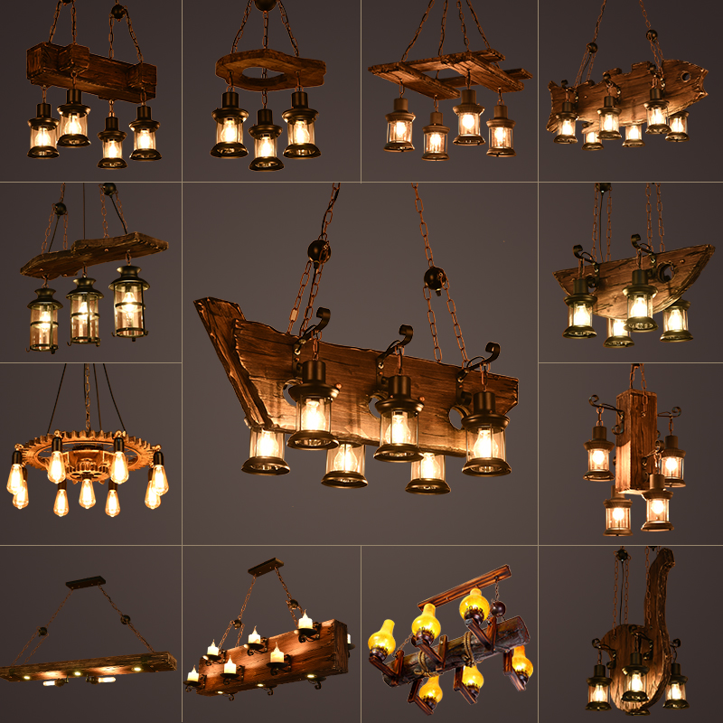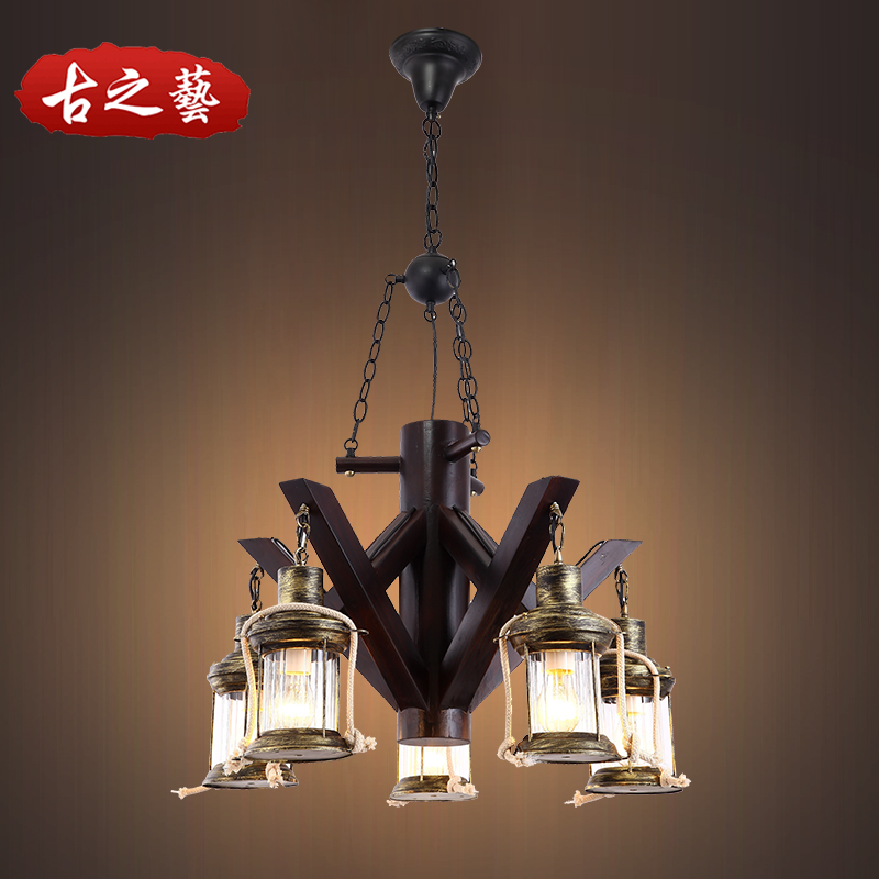 美式乡村复古怀旧实木吊灯个性创意酒吧民宿客栈咖啡厅灯具