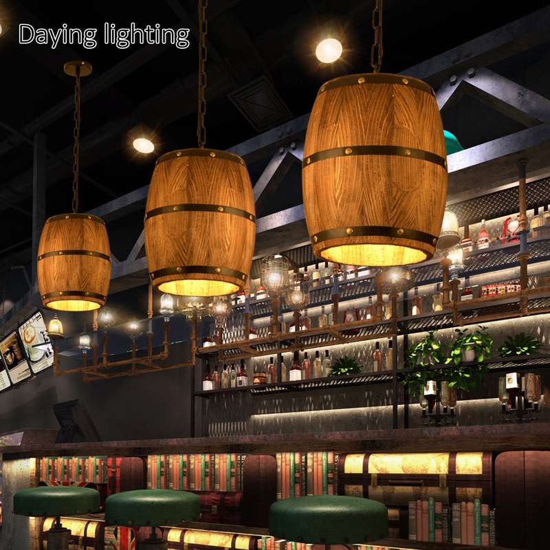 美式乡村复古实木酒桶吊灯个性创意酒馆酒吧餐厅酒窖酒庄灯具跨境
