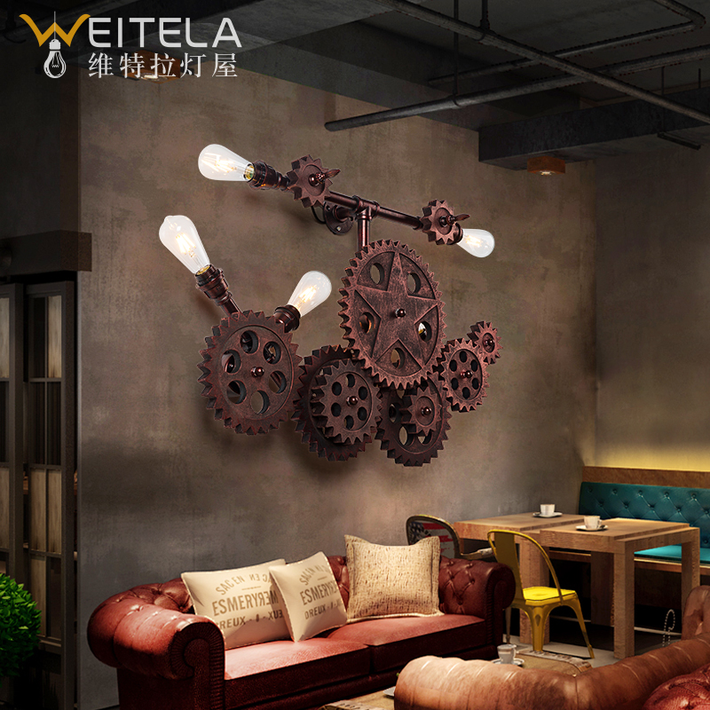 实木乡村铁艺咖啡馆创意壁灯复古工业水管壁灯酒吧灯美式灯