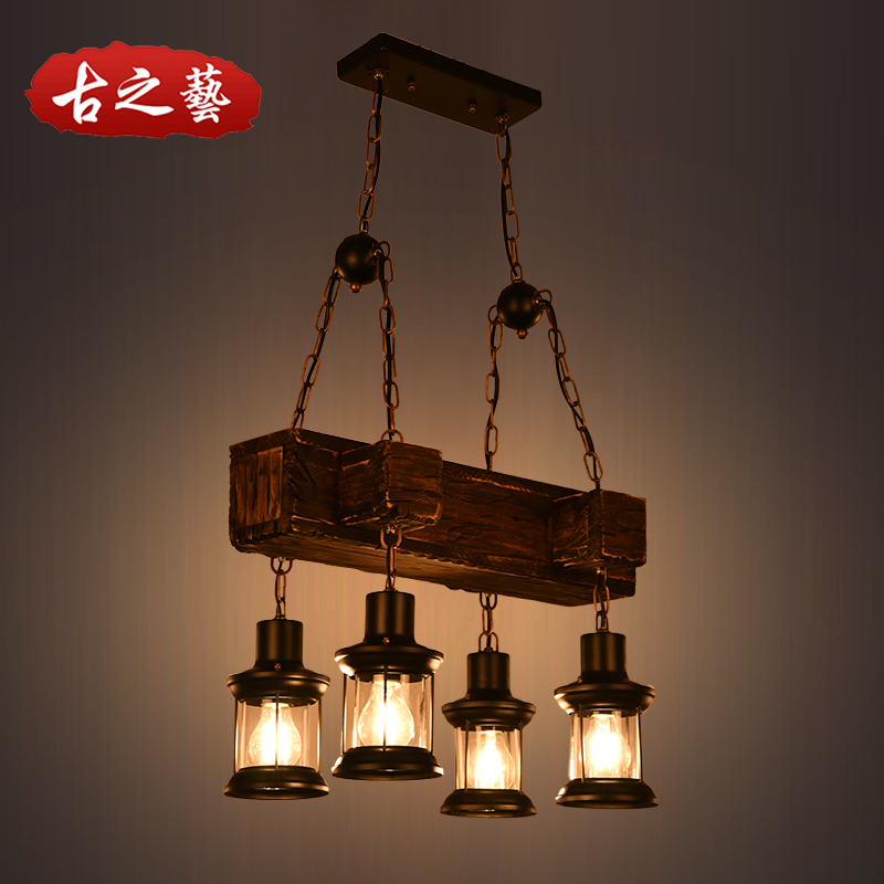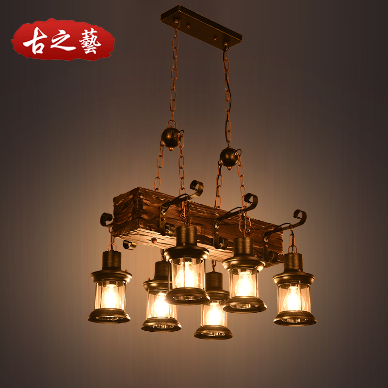 复古美式乡村实木吊灯餐厅灯个性创意麻将灯酒吧灯民宿客栈灯具