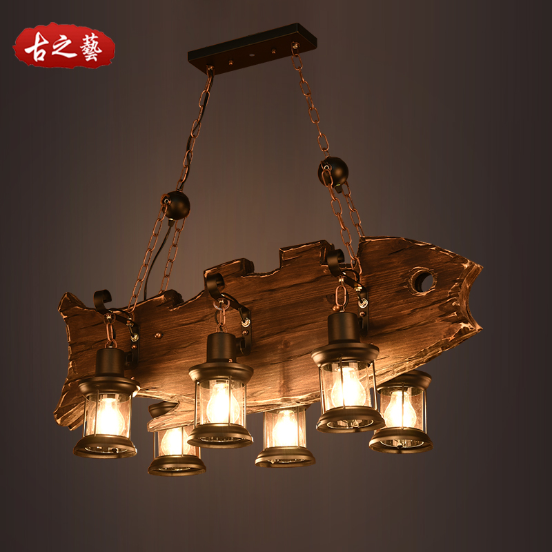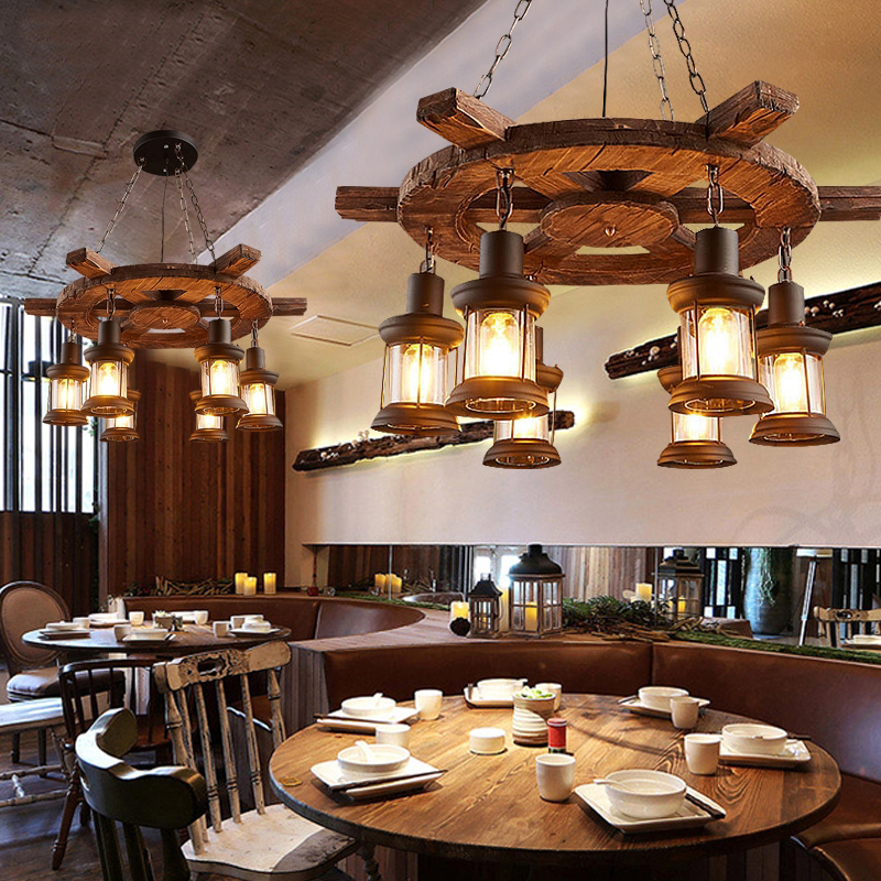 美式乡村复古实木吊灯创意怀旧酒吧吧台餐厅漫咖啡厅服装烤鱼店灯