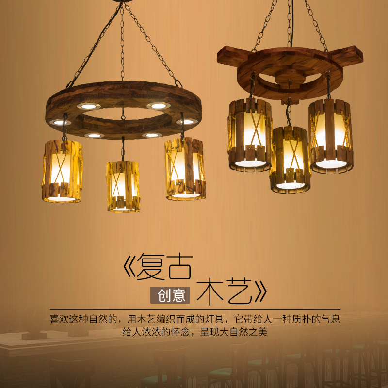 木头吊灯loft美式乡村酒吧工业风复古餐厅民宿烧烤火锅店实木灯具