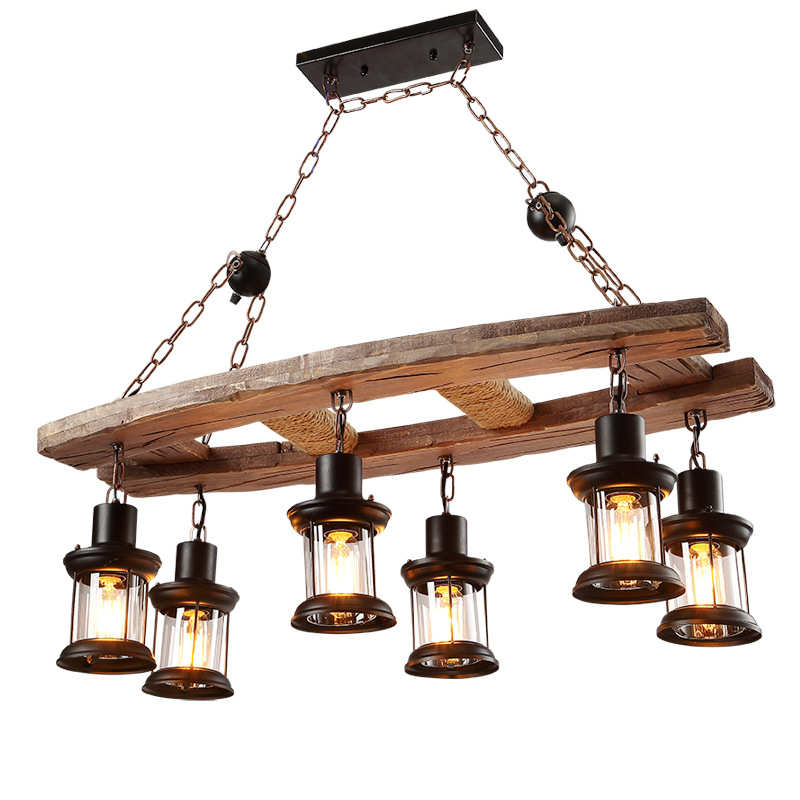 美式乡村工业风实木吊灯 酒吧咖啡馆餐厅实木吊灯 复古怀旧吊灯