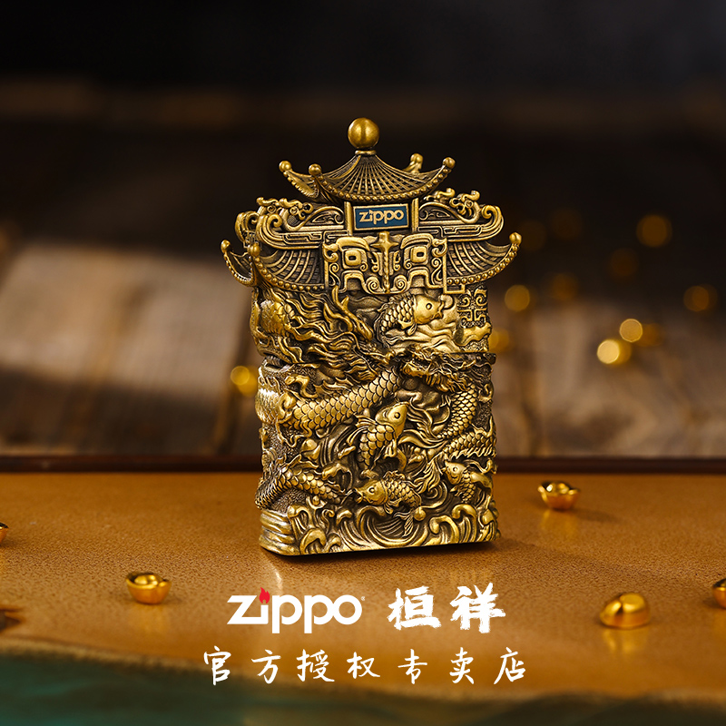 Zippo打火机鱼跃龙门官方正品重机套壳防风煤油送朋友礼物男生用