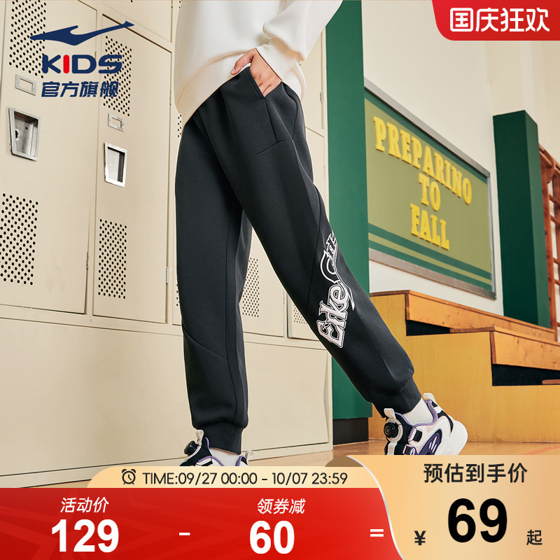 鸿星尔克童装男童卫裤秋季新款束脚裤秋冬中大童针织休闲运动长裤