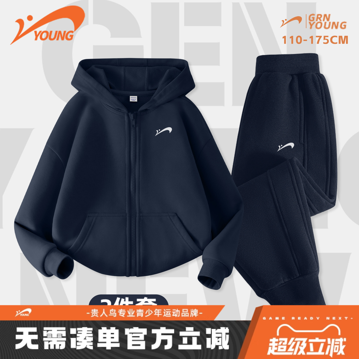 贵人鸟童装男童运动套装秋冬装大童帅气加绒连帽外套儿童秋季裤子