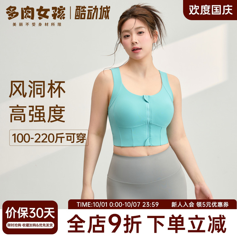 大码瑜伽服女胖mm运动背心前拉链美背健身内衣跑步防震防下垂文胸