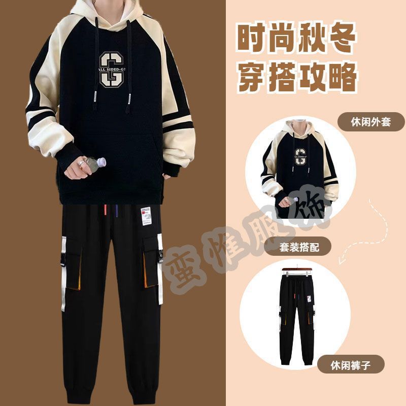 耐克顿纯棉休闲运动套装男士秋冬季宽松大码青少年开衫卫衣两件套