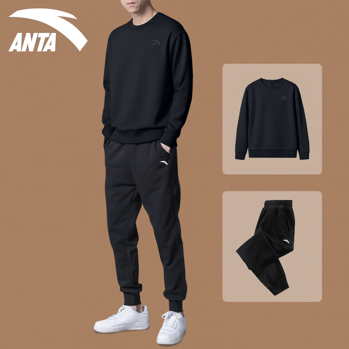 特步运动套装男春秋2025新款保暖卫衣长裤秋装大码宽松跑步两件套