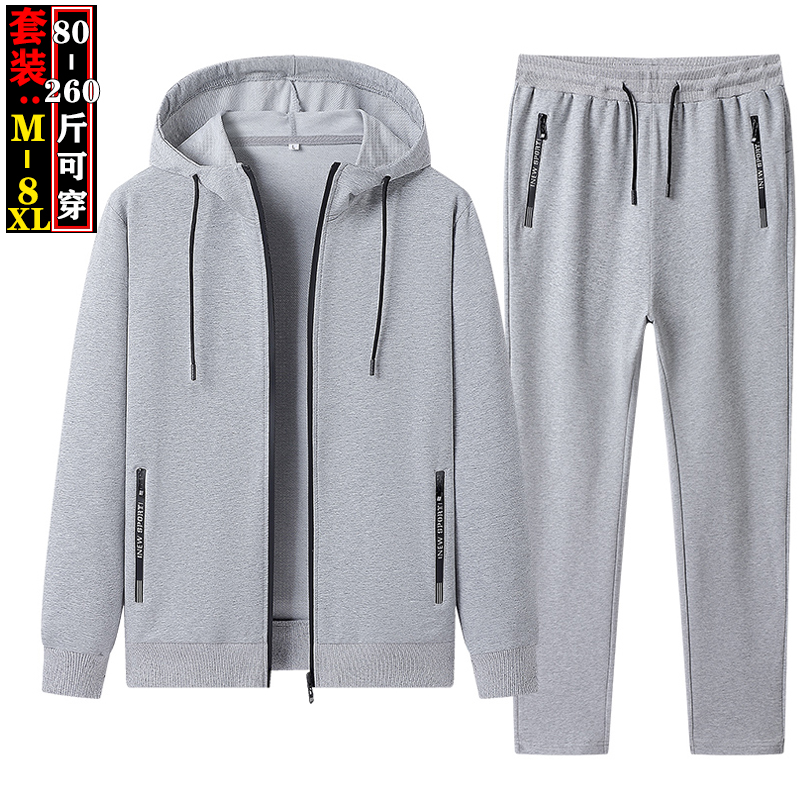300斤大码卫衣套装男纯棉休闲运动两件套学生宽松春秋款男装一套