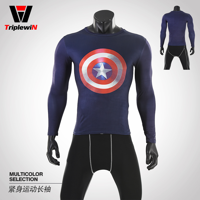 印花运动健身衣超人美队长紧身衣T恤男长袖钢铁侠速干衣骑行跑步