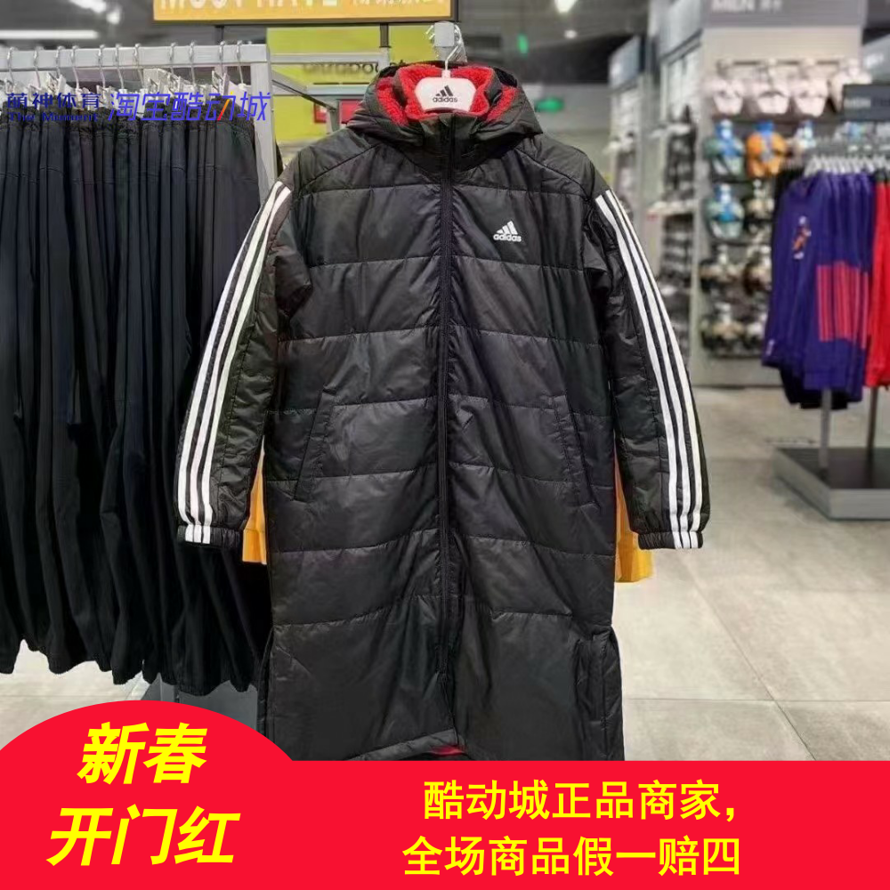 Adidas阿迪达斯羽绒服男女秋冬中长款棉服情侣保暖加厚连帽鸭绒服
