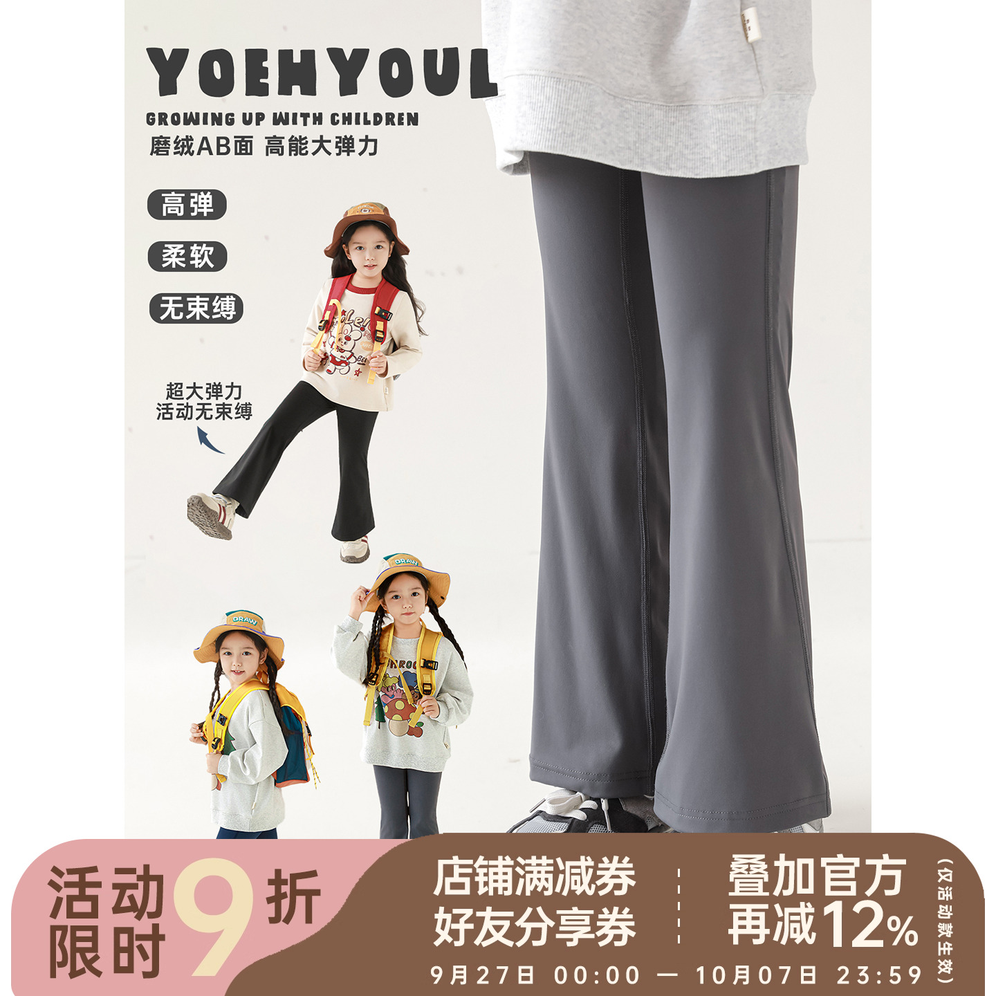 骆驼微喇裤女秋冬时尚复古风高腰开衩长裤弹力修身显瘦百搭瑜伽裤