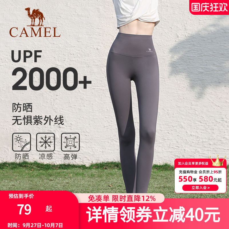 骆驼鲨鱼裤女紧身凉感户外跑步黑色防晒瑜伽打底裤爬山运动长裤
