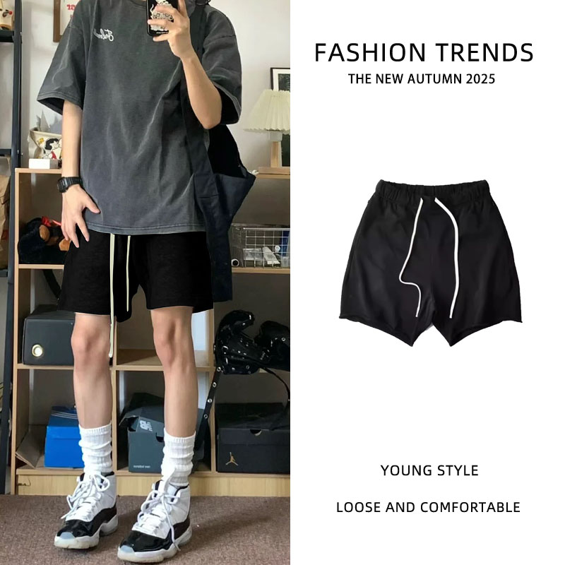 【赠运费险】夏季抽绳五分裤子美式运动篮球裤休闲黑色直筒短裤男
