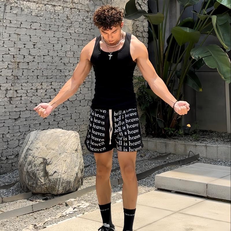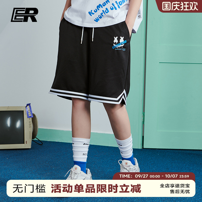 ER字母条纹印花短裤2023夏季潮牌街头男女同款篮球运动裤黑色