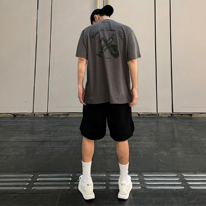 LAMLICKA夏季扎染纯棉运动休闲短裤男日系潮牌宽松黑色篮球五分裤