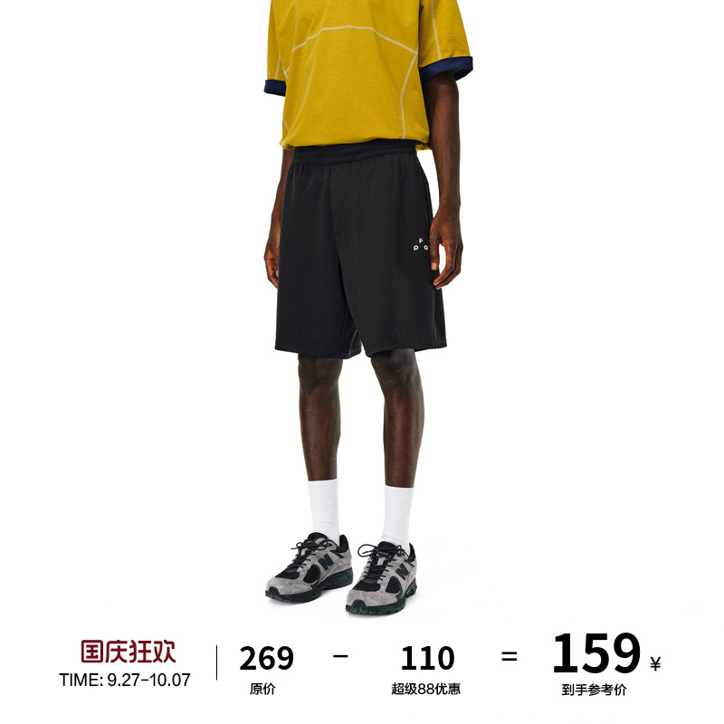 Find Better2024年夏季新款华夫格短裤黑色系带运动休闲篮球短裤