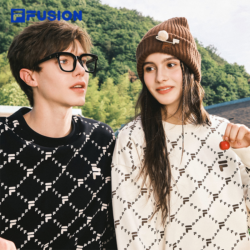 FILA FUSION斐乐潮牌情侣加绒卫衣秋季宽松圆领时尚休闲男女上衣