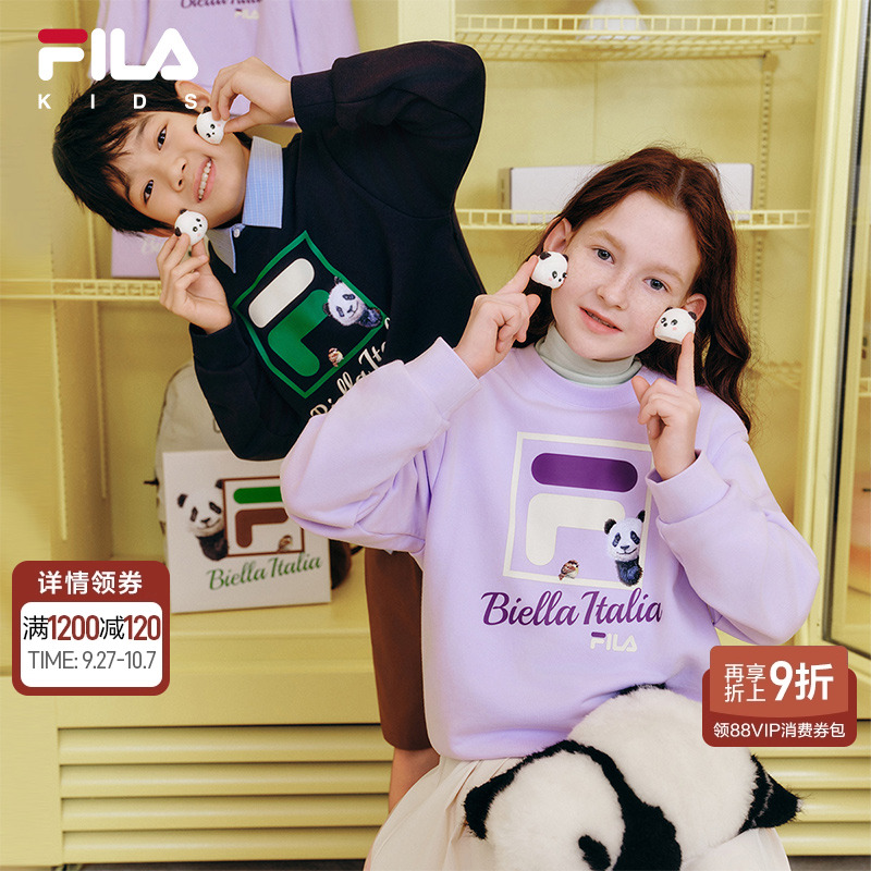 FILA斐乐儿童童装熊猫套头抗菌卫衣2025年新款男女童中大童春秋装