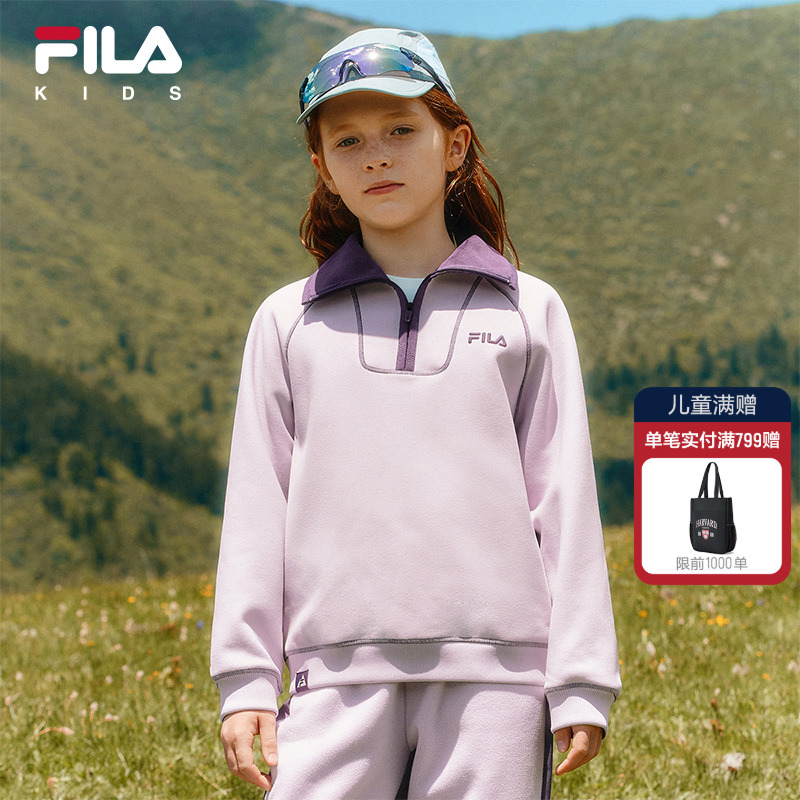 FILA斐乐儿童童装加绒保暖卫衣2025年冬季新款男女童套头翻领上衣