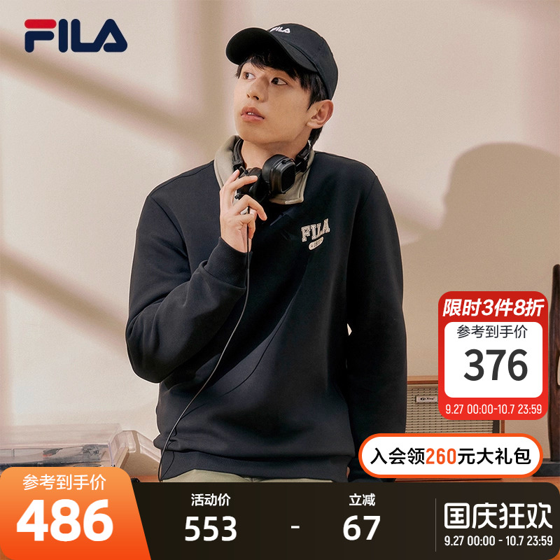 FILA斐乐官方卫衣男士秋季新款休闲圆领套头宽松针织长袖运动上衣