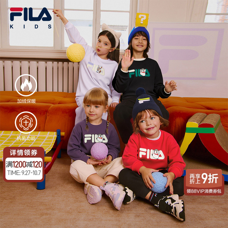 FILA KIDS斐乐童装儿童卫衣冬季款男女童加绒保暖抗菌套头上衣潮