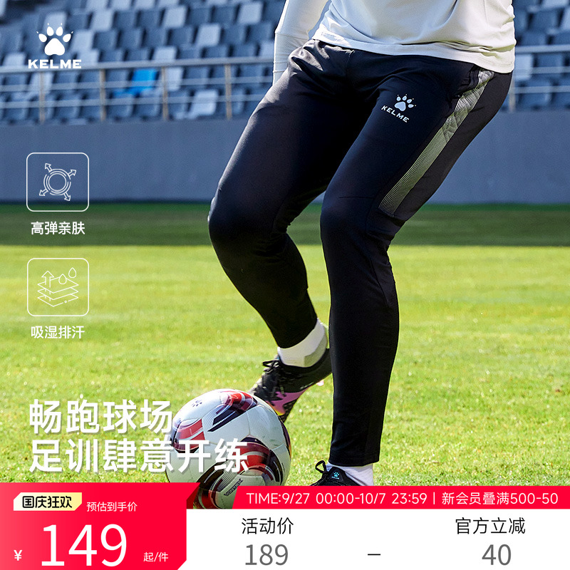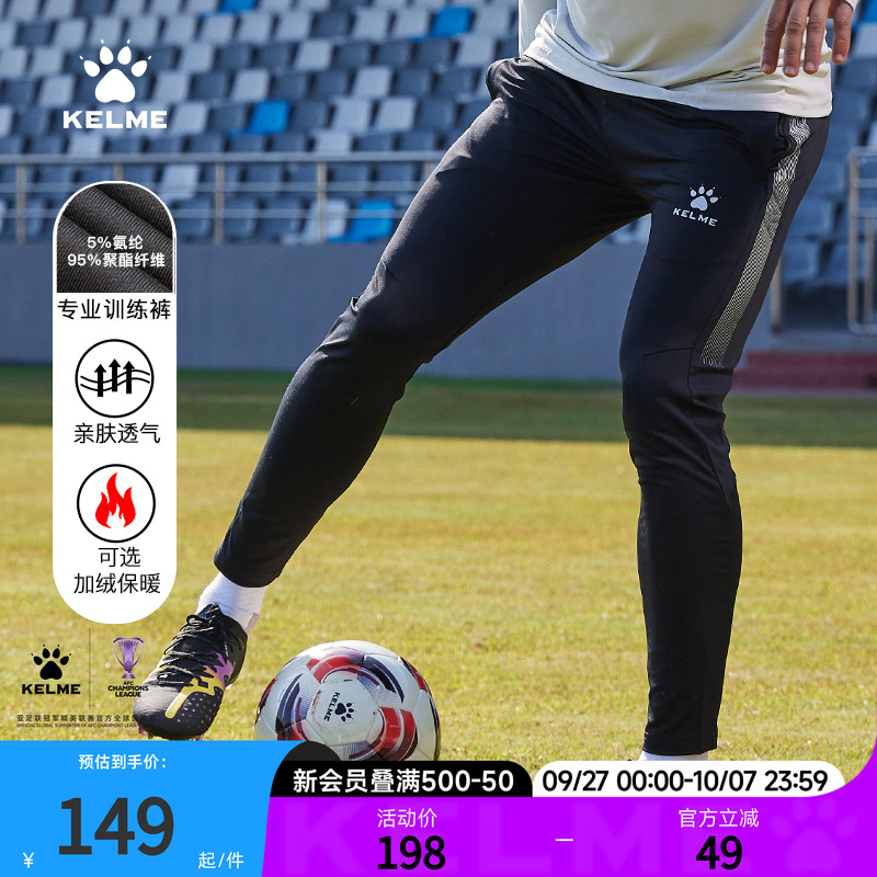 KELME卡尔美足球训练收腿裤男秋冬加绒弹力健身儿童薄运动长裤