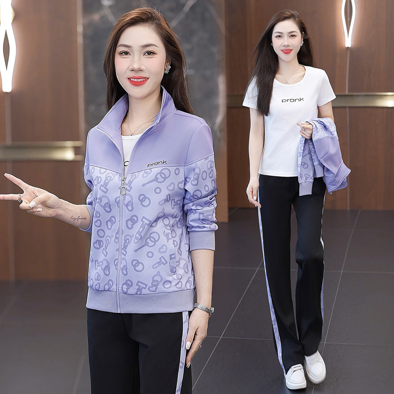 61-992品牌休闲运动套装显女春款年新款码秋时尚洋气瘦跑步两大件