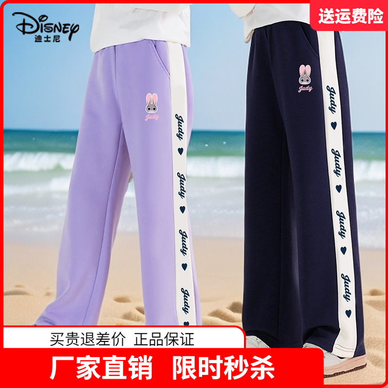 迪士尼童装女童宽松阔褪裤中大童春秋季休闲裤女孩长裤春款运动裤